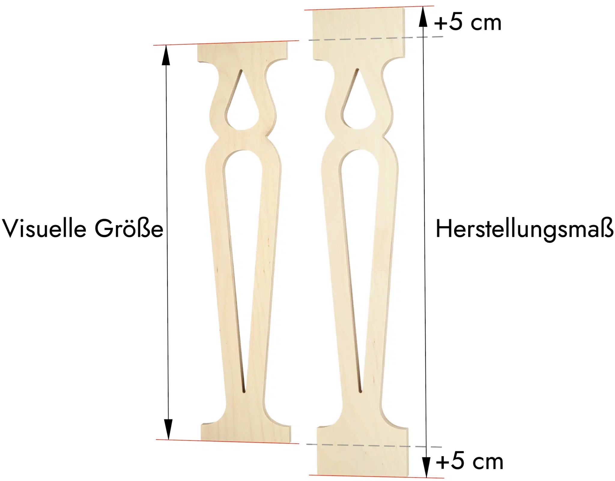 Für eine einfache Montage Ihres Giebelschmucks wird dieser 5 cm (oder entsprechend Ihrer individuellen Vorgaben) breiter hergestellt. Sie haben damit die Möglichkeit Ihren Giebelschmuck auf die richtige Länge zuzuschneiden und somit individuell an das Dach anzupassen.
