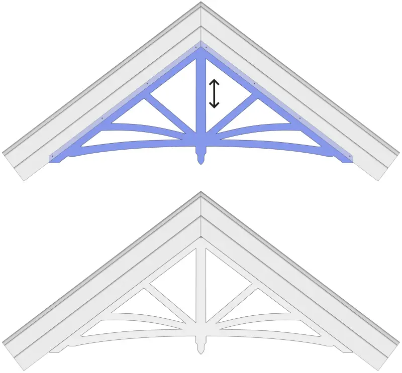 Es gibt noch mehr Möglichkeiten, aber dies ist eine der häufigsten. Zum Vergrößern auf das Bild klicken. Sie entscheiden, wie viel vom oberen Teil des Holzornaments nach der Montage sichtbar sein soll.