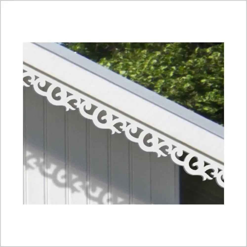 Die Montage ist einfach: Die Verzierungen werden hinter dem Windbrett montiert und wirken wie ein integraler Bestandteil der Dachkonstruktion. Sie sind in verschiedenen Größen und Varianten erhältlich – passend für klassische Fassaden oder moderne Neuinterpretationen.