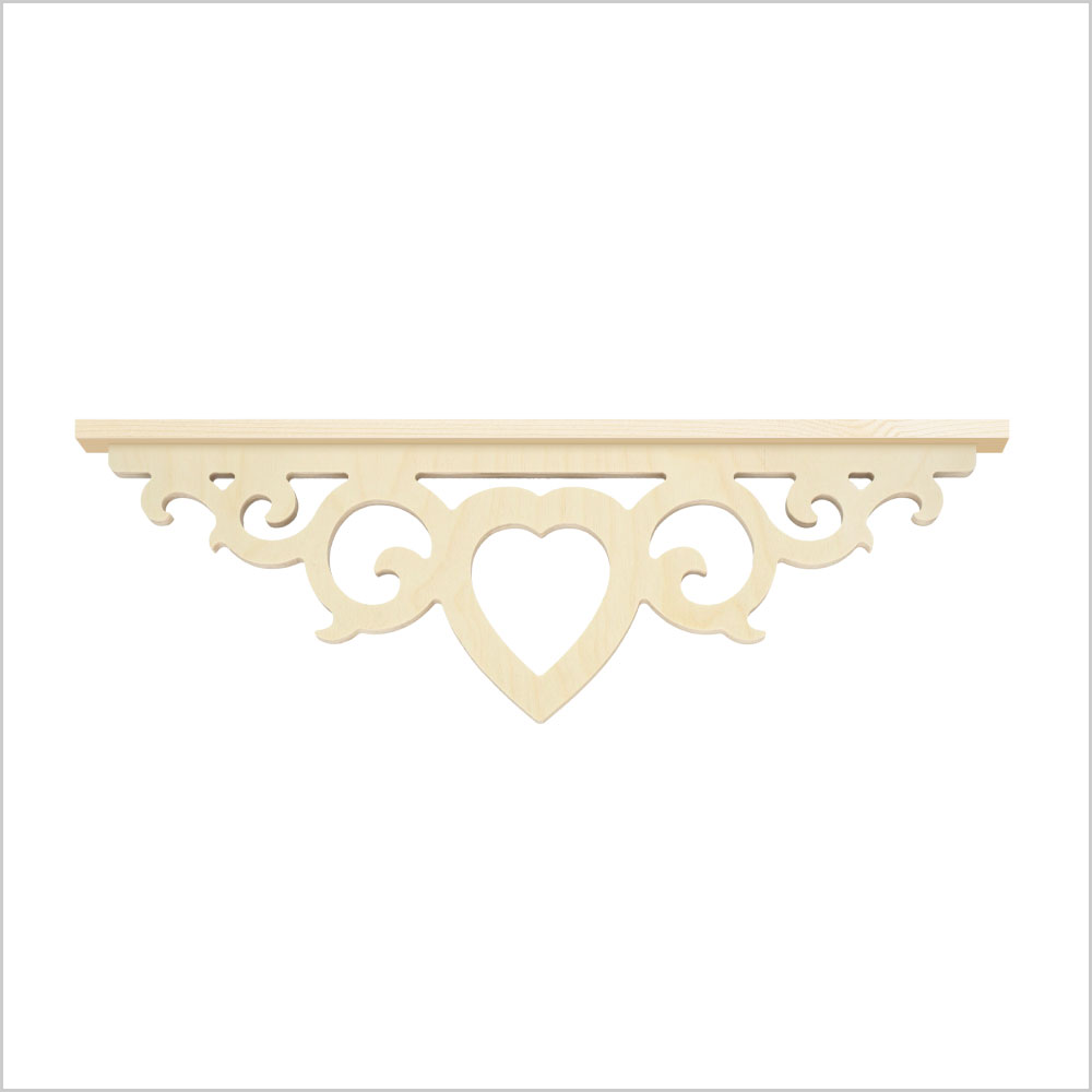 Wooden bracket with a heart motif in classic gingerbread style. Crafted in Sweden, ideal for porches, verandas and entrances, adding romantic charm and traditional turn-of-the-century elegance.