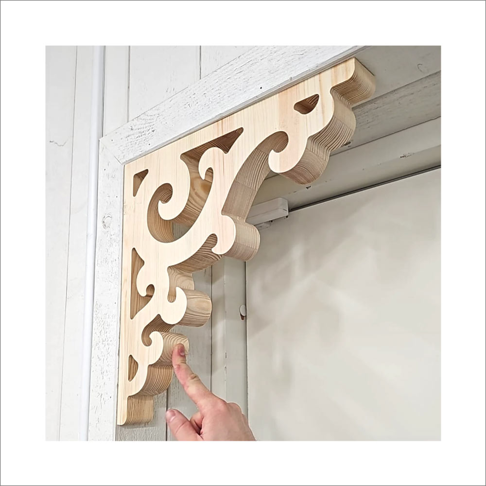 Classical wooden bracket buddys to decorate your house, porch and veranda with victorian style. The bracket is mounted between the corner brackets.