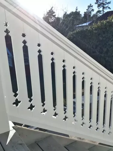 To adapt the railing spindles for a staircase, we need three precise measurements from you. These measurements are used to calculate the slope of the stairs and to offset the pattern so that it appears even and visually balanced along the entire railing.
