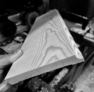 For our mouldings, skirting boards, architraves and handrails we use carefully selected Swedish pine from northern forests. The timber is planed in our own profiles with custom-made blades, giving mouldings and details with unique character and high precision. Unlike many industrial products, our mouldings are not finger-jointed or laminated – here you get solid wood all the way through.