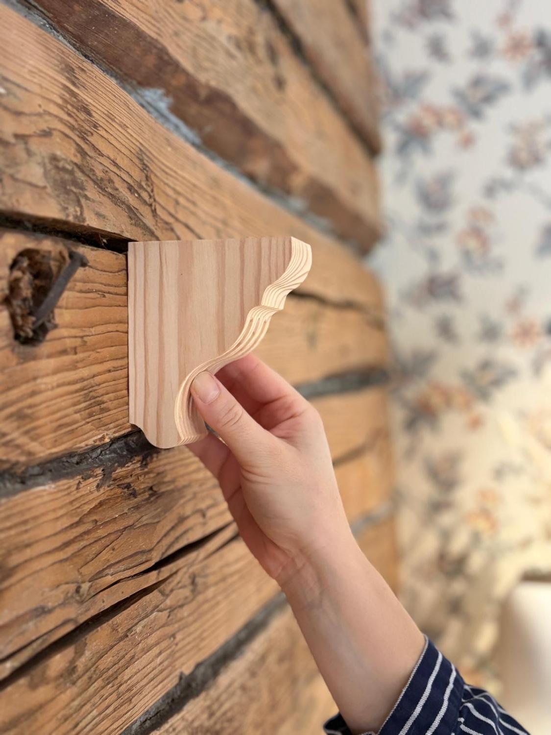 11 x 9 x 4,3 cm. Vintage-style shelf bracket in solid wood. Made in Sweden
