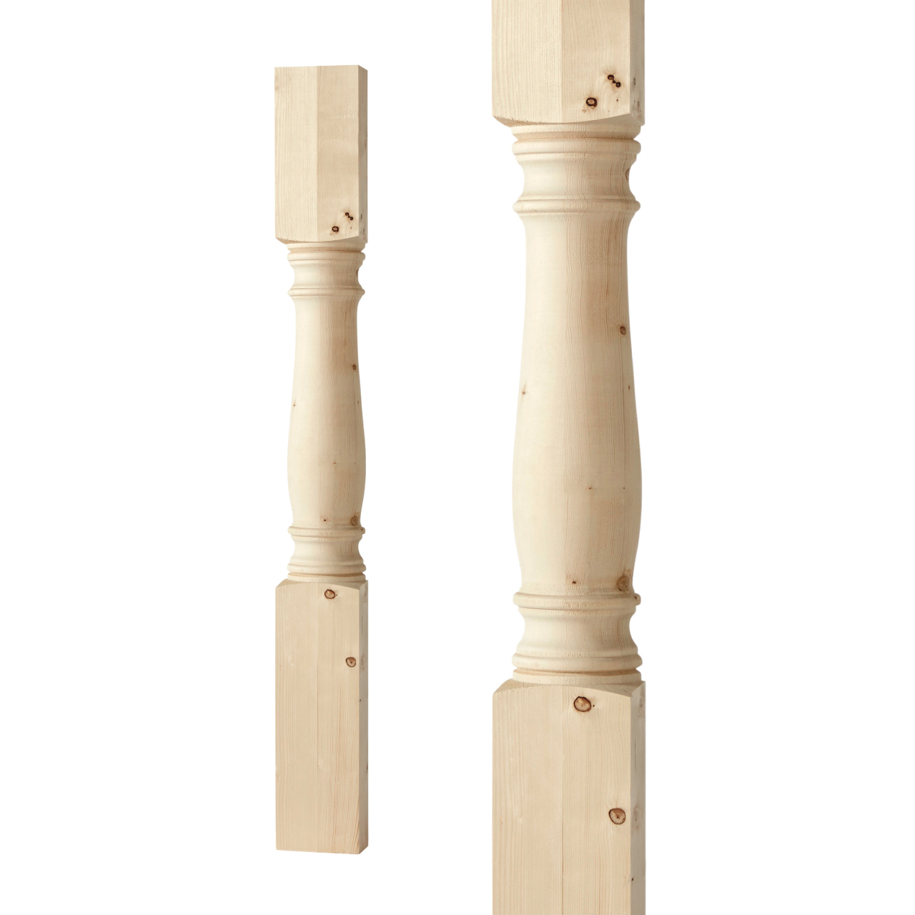 Flat Victorian-style baluster in Swedish birch. Adds a traditional and timeless look to classic porch or veranda railings.