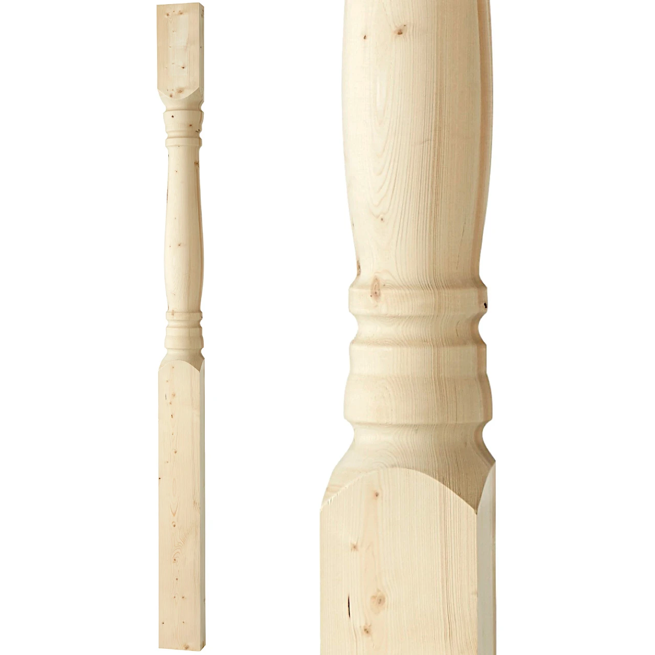 Flat Victorian-style baluster in Swedish birch. Adds a traditional and timeless look to classic porch or veranda railings.