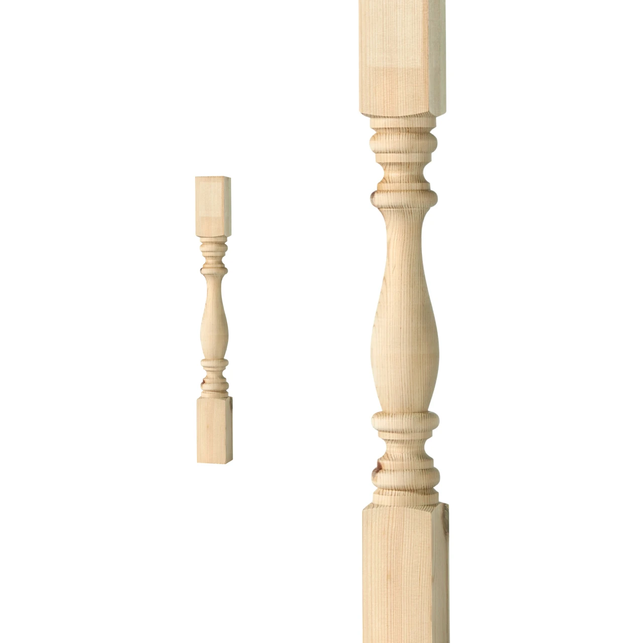 Flat Victorian-style baluster in Swedish birch. Adds a traditional and timeless look to classic porch or veranda railings.