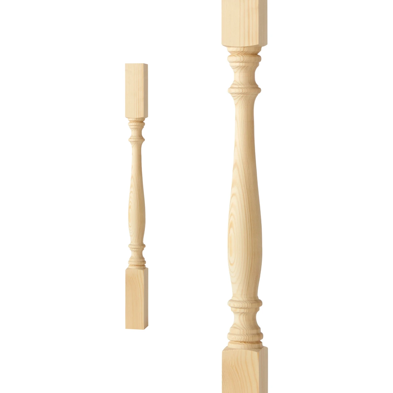 Turned wooden baluster in pine wood, 900 x 65 mm. Decorative spindle for veranda railing.