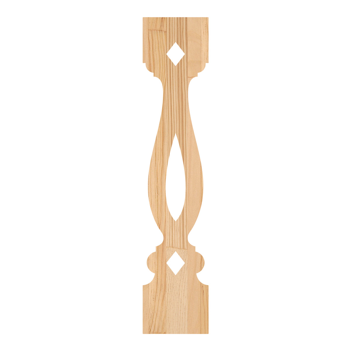 Flat Victorian-style baluster in Swedish pine. Adds a traditional and timeless look to classic porch or veranda railings.