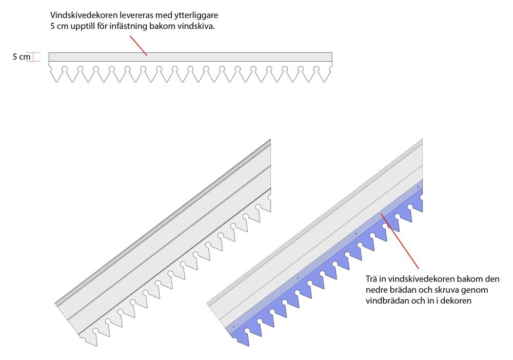 Hur mycket av den övre delen av vindskivedekoren som ska synas bestämmer du själv vid monteringen.