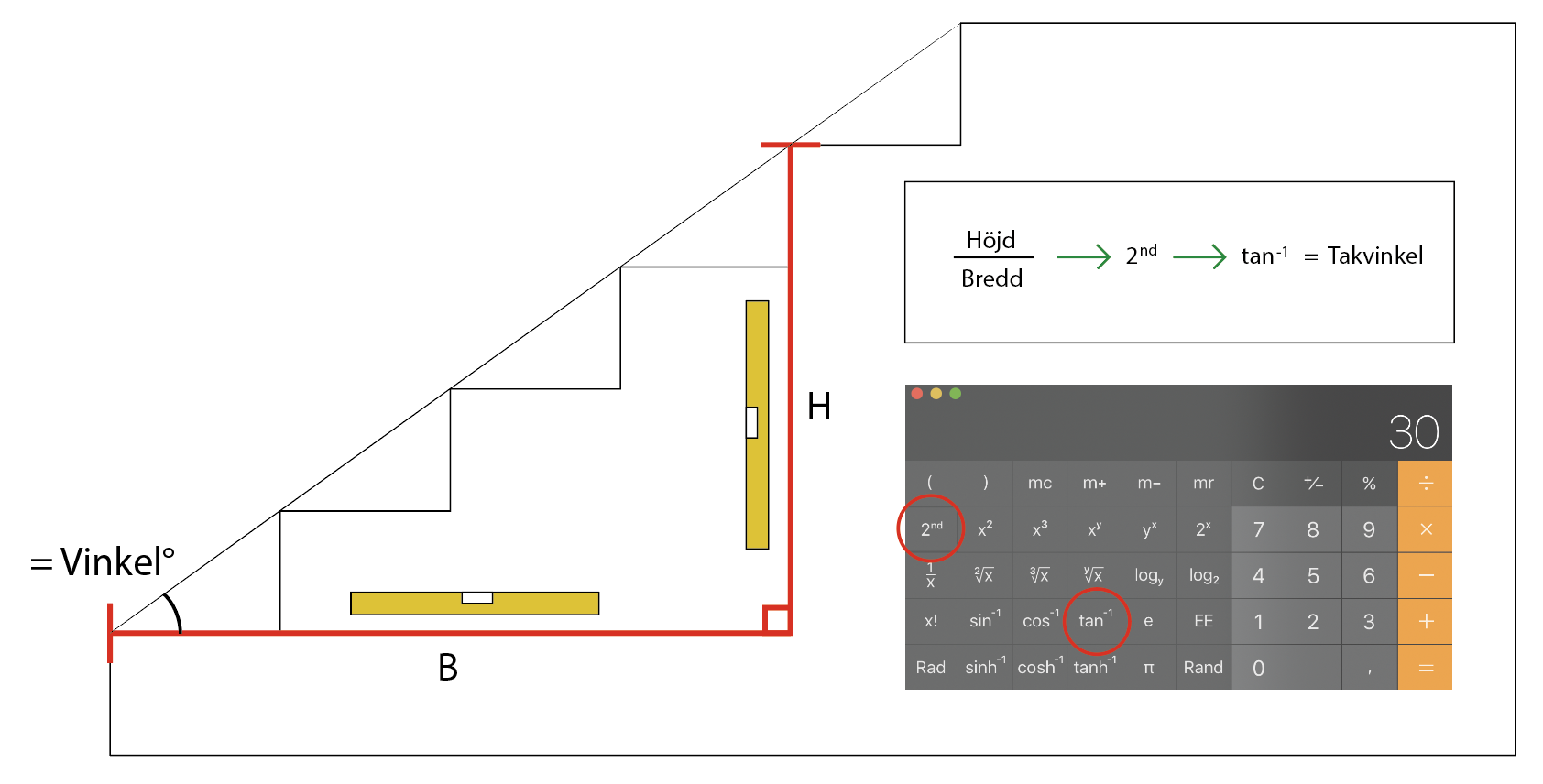 Här visar vi hur du kan beräkna lutningen på trappan. Om du känner dig osäker så är det bara att du hör av dig till oss så hjälper vi dig.