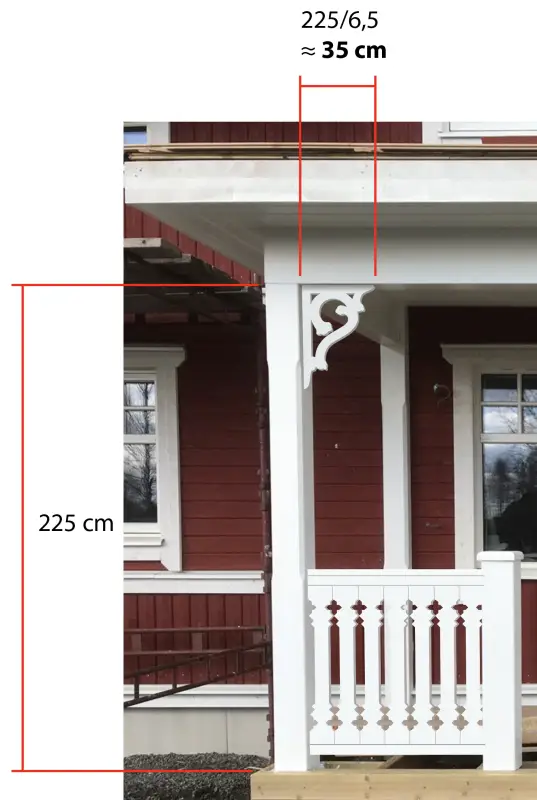 (I detta exempel 225/6,5 ≈ 35 cm)