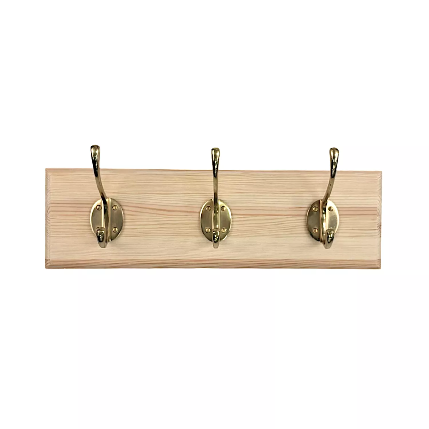 Kroklist i furu 40 x 12 cm med 3 krokar i mässing. Klassisk kroklist för hall och entré med profilerad träbräda och stabila metallkrokar.