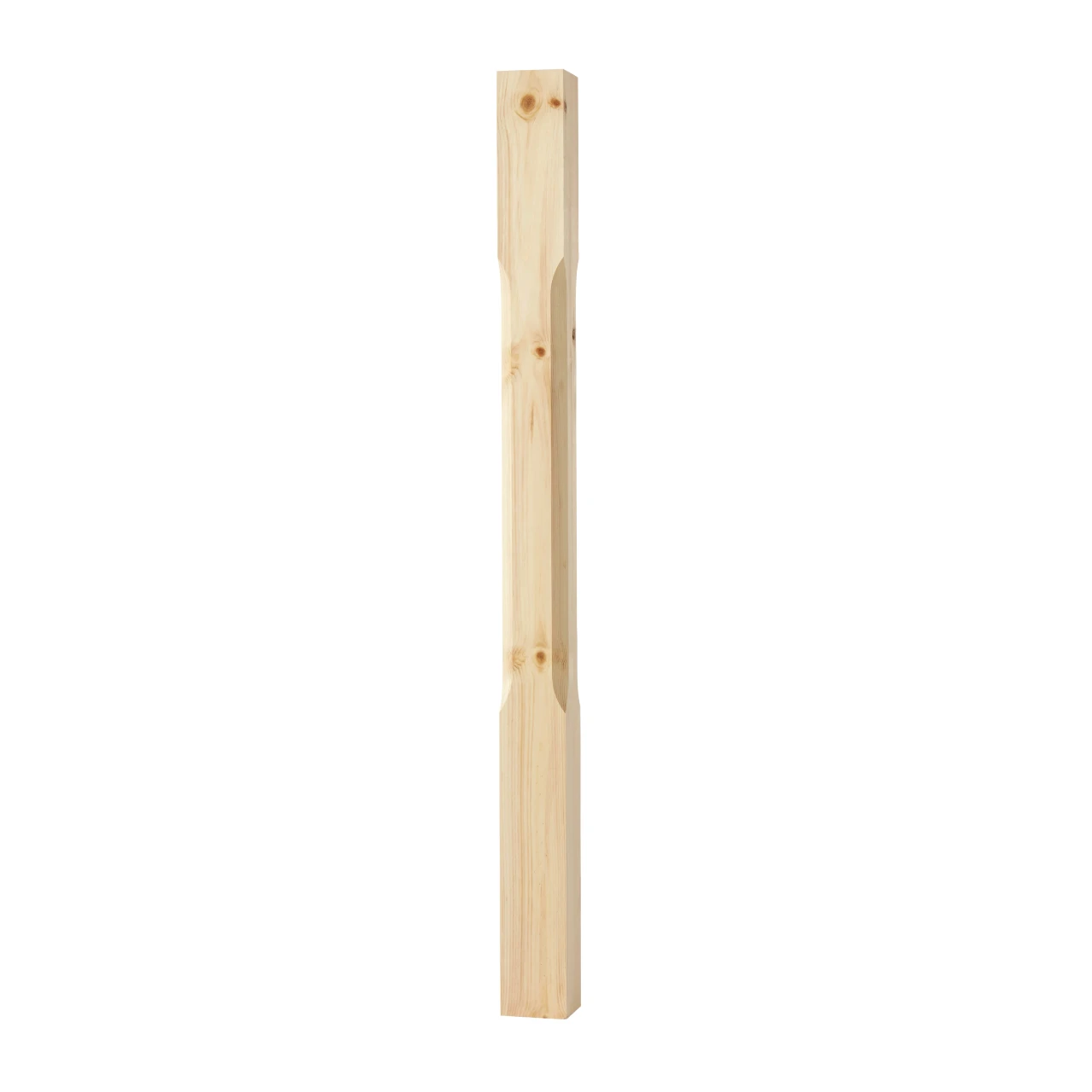 En fasfräst stolpe i gran som används mellan sektioner och hörn på veranda, balkong och staketräcke.