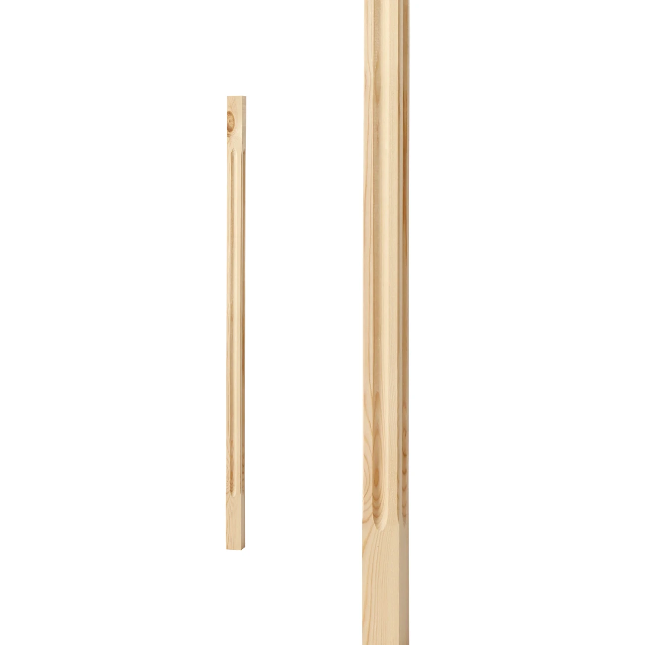 Fyrkantig trästolpe i furu, 910 x 32 mm. Används mellan hörnstolpar som räckesspjäl i stilren form. Ej bärande.