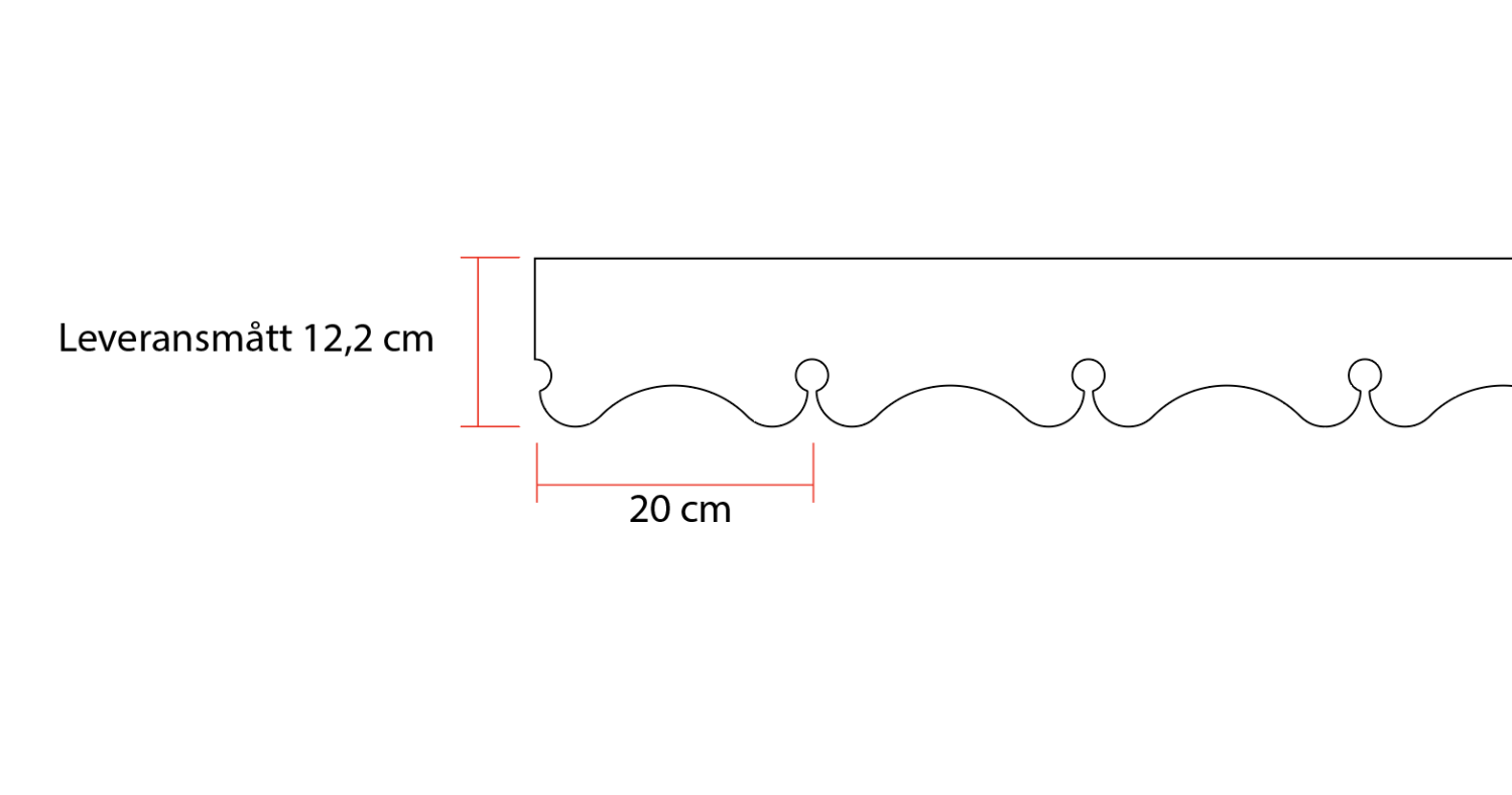 Vindskivedekor i snickarglädje med små taggar (6 cm breda). Du monterar den bakom vindskivan eller på fotbrädan vid takfoten för ett lättare men klassiskt uttryck.